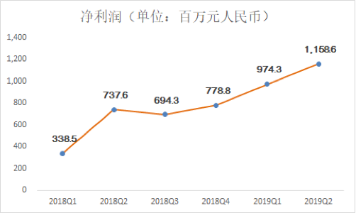 2018年一季度至四季度,趣店調整后凈利潤分別為3.39億元、7.38億元、6.94億元、7.79億元;2019年一季度,趣店凈利潤繼續保持增長,達到9.74億元,;2019年二季度,凈利潤更是直接邁入10億元俱樂部,上漲至11.6億元,再創歷史新高。