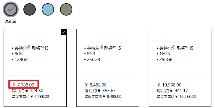 而英特爾版本的 Surface Pro 9 國行價格也出來了, 最低配 8GB+128GB 加 i5 處理器要 7788 元,i7 搭配 1TB 直接奔著兩萬塊去了。