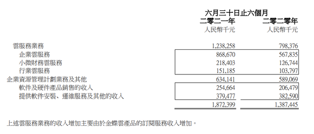 報告期內,小微企業市場云業務實現高速增長,收入同比增長72.3%,其中金蝶云?星辰和精斗云收入同比增長54.8%;金蝶KIS云通過推動KIS端產品老客戶升級云訂閱服務,收入同比增長329.9%,續費率約91.6%。