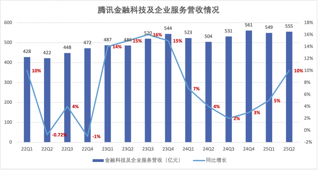此外,騰訊金融科技及企業服務業務第二季的收入同比增長10%至555億元,這主要得益于消費貸款服務、商業支付活動及理財服務的收入增長。企業服務收入的增速較近幾個季度有所加快,得益于企業客戶對AI相關服務的需求增加,包括GPU租賃和API token使用,以及商家技術服務費的增長。