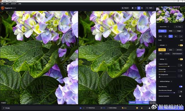 而在AI應(yīng)用領(lǐng)域,英特爾的啟動也遠(yuǎn)早于AMD。還記得數(shù)年前我率先引入的TOPAZ Labs(公司名)的《Gigapixel AI》圖像放大+AI細(xì)節(jié)重塑應(yīng)用(測試)嗎?如今,TOPAZ Labs旗下的《Photo AI》、《Video AI》、《Sharpen AI》、《DeNoise AI》和《Gigapixel AI》早已在圖像和視頻編輯/優(yōu)化領(lǐng)域名聲大燥。而依托于OpenVINO技術(shù),英特爾的Iris Xe核顯數(shù)年前就能以數(shù)倍的效率領(lǐng)先AMD平臺完成圖像的放大+AI細(xì)節(jié)重塑。近期AMD的Radeon集顯性能爆發(fā)扳回一城,但即將到來的酷睿Ultra平臺依托于Arc核顯又將實(shí)現(xiàn)反超(我還不能說太多,畢竟還沒發(fā)布呢^__#)。