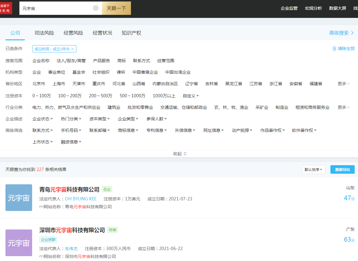 元宇宙概念大火,帶來的是相關(guān)公司數(shù)量的飛漲。據(jù)天眼查APP查詢,最近一年新成立的元宇宙相關(guān)公司有227家,說是如雨后春筍也毫不夸張。