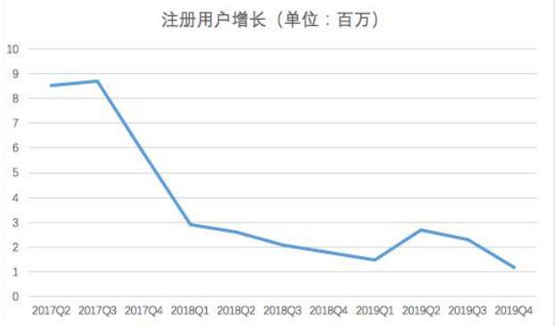 失去了螞蟻金服的導流,自2017年第四季度起,趣店的注冊用戶增長速度直線下滑,趣店陷入增長停滯困局。