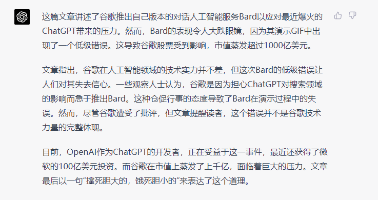 因為 GPT-4 可以支持更長的輸入文本,所以我們就又測試了它的總結概括能力。