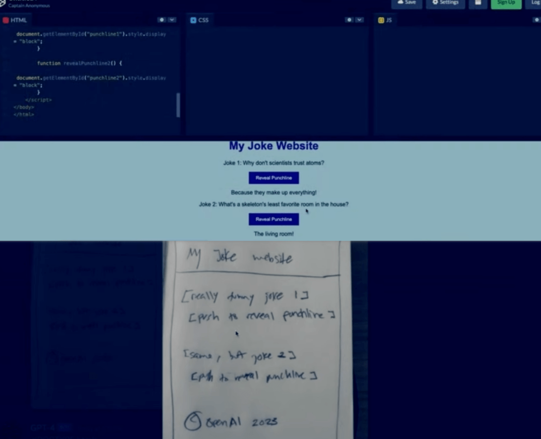 雖然這個示例里的網站非常簡單,但 GPT-4 的理解能力和創造力還是讓人覺得不可思議: