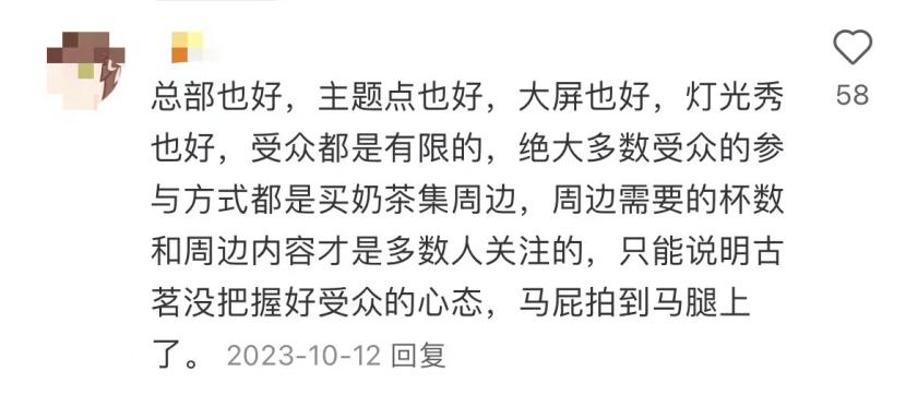 除此之外,在小紅書上搜索古茗,近期出現的較多的爭議內容是,古茗在推出聯名產品時,設定了一次需要消費4杯、總共購買10杯以后,才能得到周邊。這一玩法規定讓許多消費者不滿。一位小紅書網友表示,“周邊需要的杯數和周邊內容才是多數人關注的,只能說明古茗沒把握好受眾的心態,馬屁拍到馬腿上。”