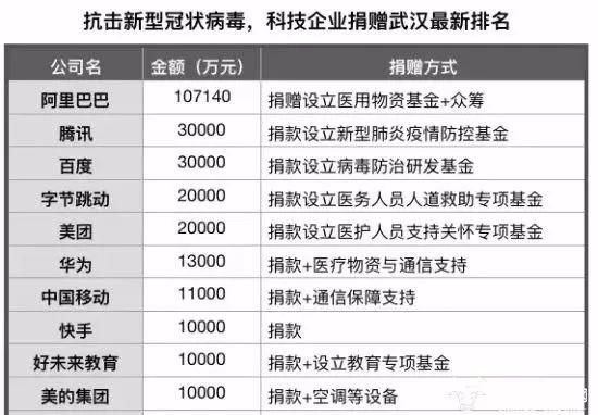 2020年新型冠狀病毒肆虐全國,百余家互聯網企業馳援武漢、抗擊疫情,感動著國人,也為全國抗疫提供了難得的幫助。不完全統計,僅BAT就合計成立了16億元專項基金抗擊疫情。它們出錢、出力、出物全方位馳援武漢等地,展現了中國人團結一心,眾志成城抗疫的團結一面。