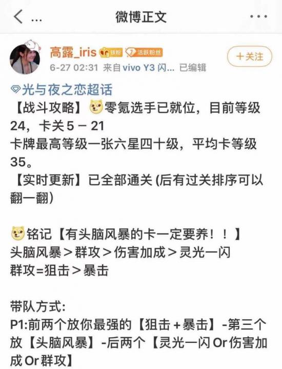 但隨著玩家越來越多,不少用戶開始在超話和小紅書發布零氪攻略,未來玩家對游戲玩法探索度加深,《光與夜之戀》也許會進入攻略黨與氪金黨共存的時代。