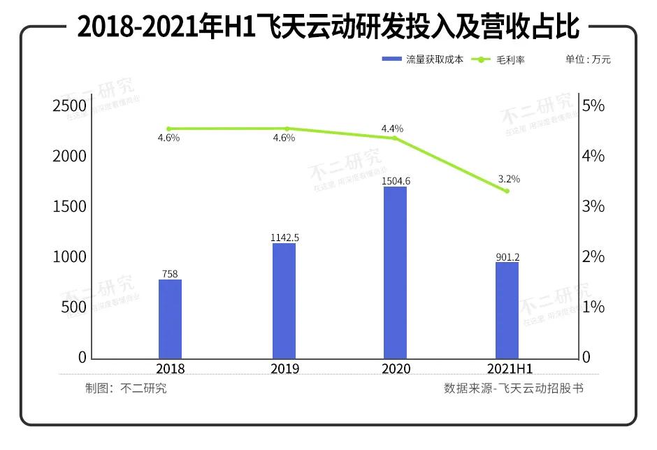 甚至此前一段時(shí)間,研發(fā)或不是其投入重點(diǎn)。「不二研究」發(fā)現(xiàn),對(duì)比逐年高企的流量獲取成本,飛天云動(dòng)的研發(fā)投入比率偏低,截止去年上半年也僅在個(gè)位數(shù)徘徊。