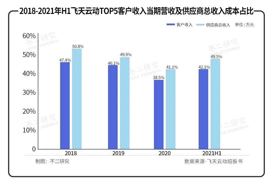 2018-2020年及2021上半年,飛天云動(dòng)TOP5客戶收入在當(dāng)期營收占比47.4%、46.1%、38.5%及42.1%;同期,TOP5供應(yīng)商在總收入成本占比約50.8%、49.9%、41.1%及49.5%。