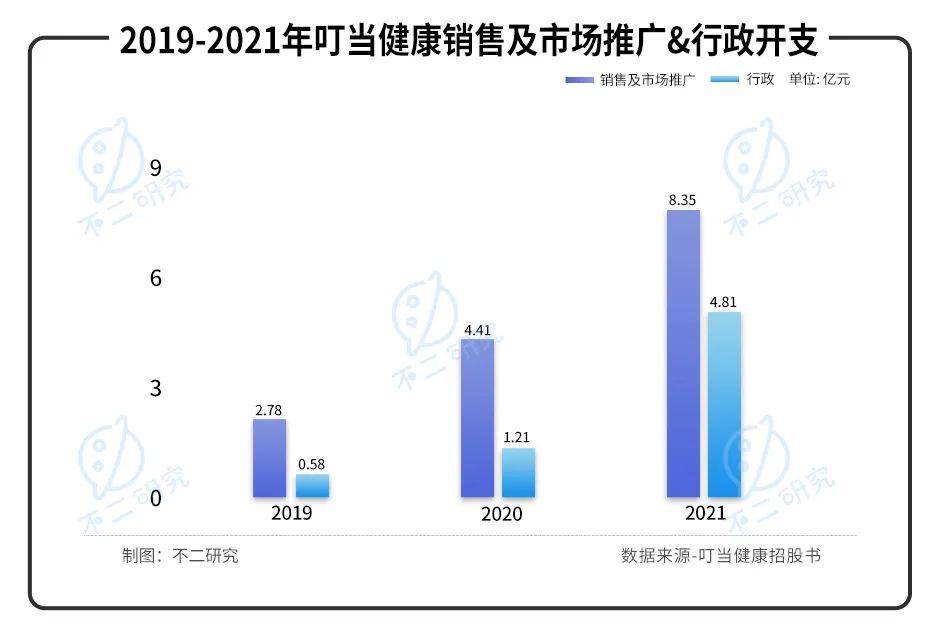 銷售及市場推廣開支分別為2.78億元、4.41億元和8.35億元,占總收入的21.8%、19.8%和22.7%。一般及行政開支分別為0.58億元、1.21億元和4.81億元,占總收入的4.5%、5.4%和13.1%。