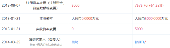 2014年3月25日,深圳國投資本管理有限公司法人代表由佟琦變更為孫耀飛。