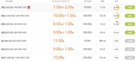 探長讀財注意到,大麥理財項目金額基本為100萬元,借款期限分為1個月、3個月、6個月12個月,以及48個月的分期項目。其中,“麥田計劃”為企業貸,“麥分期”為個人消費貸。