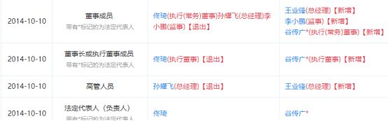 企查查資料顯示,2014年10月10日,大麥理財法人代表由佟琦變更為谷傳廣。