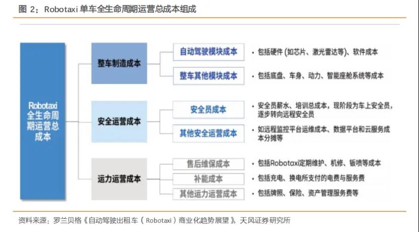 其次,Robotaxi的運營成本也不容忽視。根據弗若斯特沙利文報告,Robotaxi的運營成本可以分為單車成本、維護成本、安全冗余成本以及平臺運營成本。