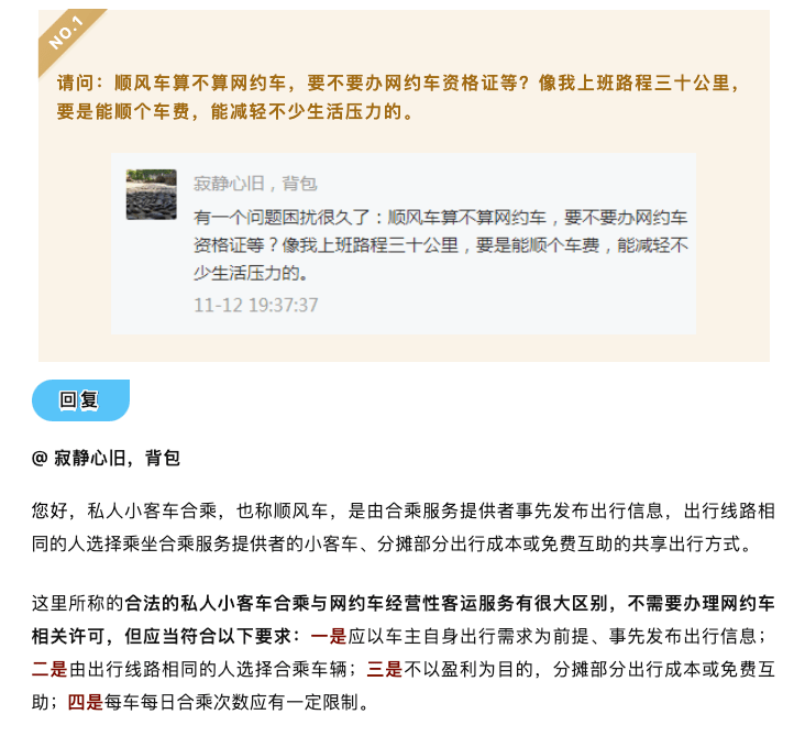 到了 2020 年,交通運輸部還再次明確了順風車和網約車不同。