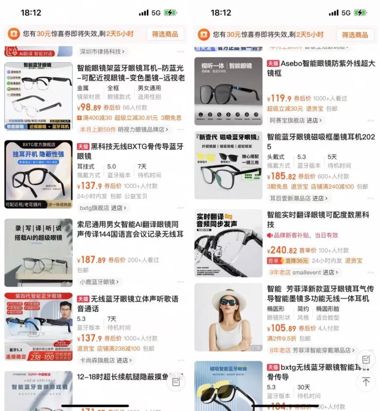 就連深圳華強(qiáng)北的柜員都嗅到商機(jī),有消費(fèi)電子愛好者表示,原本賣藍(lán)牙耳機(jī)的檔口都轉(zhuǎn)型賣AI眼鏡了,一些“大牌平替”更被擺在了顯眼位置。