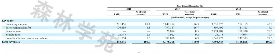 汽車融資租賃產品的利息收入、銷售收入和貸款服務費收入。