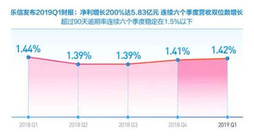 截至2019年1季度,樂信用戶達到4220萬,同比增長59.6%;1季度,樂信促成借款金額201億,同比增長35.6%;在貸余額350億,同比增長64.7%;資產(chǎn)表現(xiàn)保持穩(wěn)定,超過90天的逾期率為1.42%。