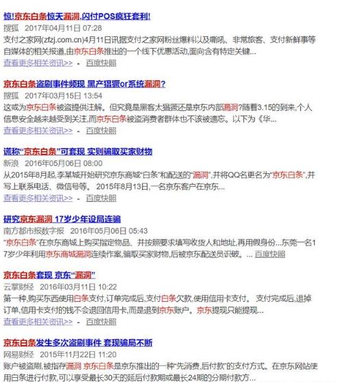 京東白條作為京東數(shù)科的核心業(yè)務之一,自推出以來也是漏洞頻發(fā),投訴不斷。據(jù)媒體報道,2014年6月,也就是京東白條業(yè)務剛剛推出4個月后,便出現(xiàn)不法分子利用京東白條漏洞進行詐騙犯罪的情況。2016年年末至2017年,京東白條因系統(tǒng)漏洞被盜刷的新聞也一直持續(xù)不斷。