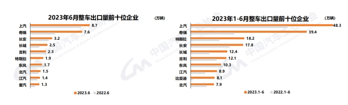 中汽協統計,2023年中國汽車出口增長迅速,上半年已突破214萬輛,同比增長75.7%,今年有望成為全球第一出口大國。