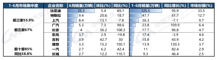 2023年上半年中國新能源車銷量前10的企業,來源:中汽協