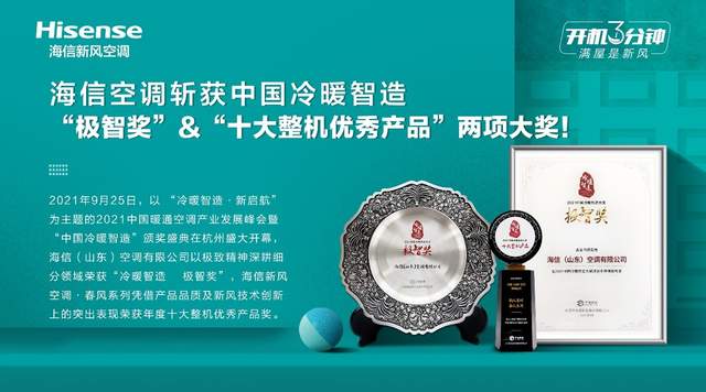 2021年9月25日,以 “冷暖智造·新啟航” 為主題的2021中國暖通空調產業發展峰會暨“中國冷暖智造”頒獎盛典在杭州盛大開幕,海信空調再度斬獲兩項大獎,引人注目!