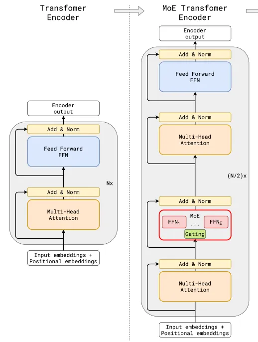 在MoE模型上,雖說核心思路是一致的,但是關于門控網絡的位置、模型、專家數量、以及MoE與Transformer架構的具體結合方案,各家方案都不盡相同,由此將拉開各家MoE模型在應用上的差距。