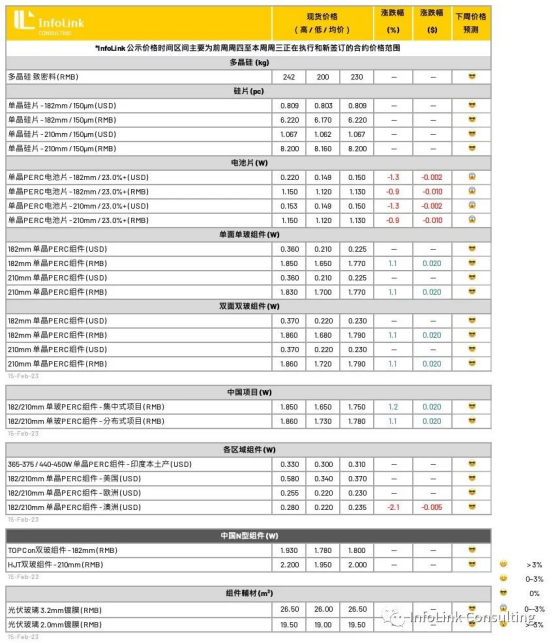 2月新訂單有限,大型訂單仍尚未落地,內(nèi)需拉動(dòng)仍寄望在3-4月啟動(dòng),本周大多執(zhí)行訂單為前期結(jié)轉(zhuǎn)單,部分開發(fā)商也表示將延后新單下訂時(shí)點(diǎn),當(dāng)前對于新報(bào)價(jià)接受度有限,靜待博弈落地。國內(nèi)需求啟動(dòng)看來又有機(jī)會(huì)推遲至3-4月,后續(xù)價(jià)格趨勢則有望跟隨硅料松動(dòng)后小幅下探至每瓦1.65-1.75元人民幣的區(qū)間。值得注意組件競爭也愈發(fā)激烈,部分廠家已給予相對平均報(bào)價(jià)下降5分人民幣左右的優(yōu)惠。