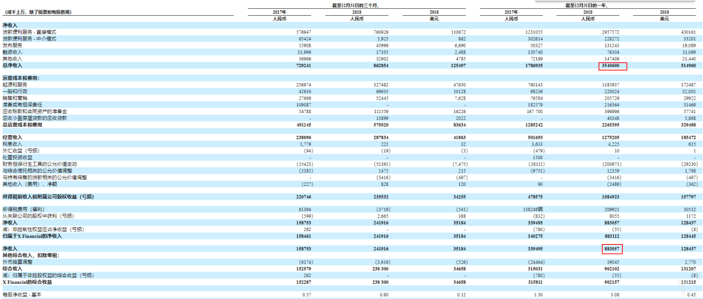從2018年整體上來看,財報顯示,小贏科技2018年凈營收為人民幣35.40億元,較2017年同期的17.87億元增長98.1%。2018年歸屬于公司的凈利潤為人民幣8.83億元(1.284億美元)。2018年非美國通用會計準則凈利潤為人民幣10.55億元(1.534億美元)。