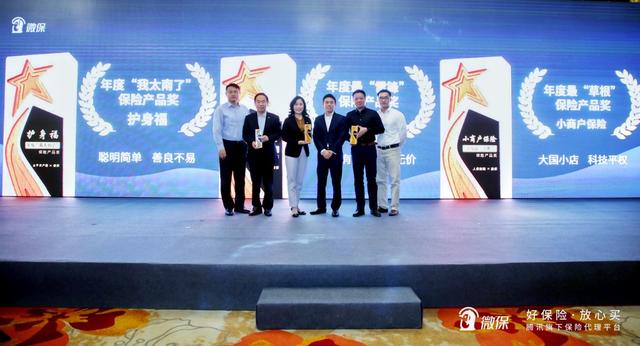 在活動現場,微保團隊還別出心裁地評選出了三大特別的年度獎項。太平洋產險和微保聯合打造的"護身福",作為市面上唯一一款猝死保額高達 100 萬的意外險,獲得年度 "我太南了"保險產品獎。