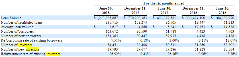 相比其他數(shù)據(jù)而言,招股書中,泰然金融獲客成本的增加尤為醒目。2016年上半年泰然金融平均獲客成本為每人0.52美元,2017年同期為每人3.61美元,到了2018年上半年,泰然金融的平均獲客成本突然飆升至每人12.72美元。