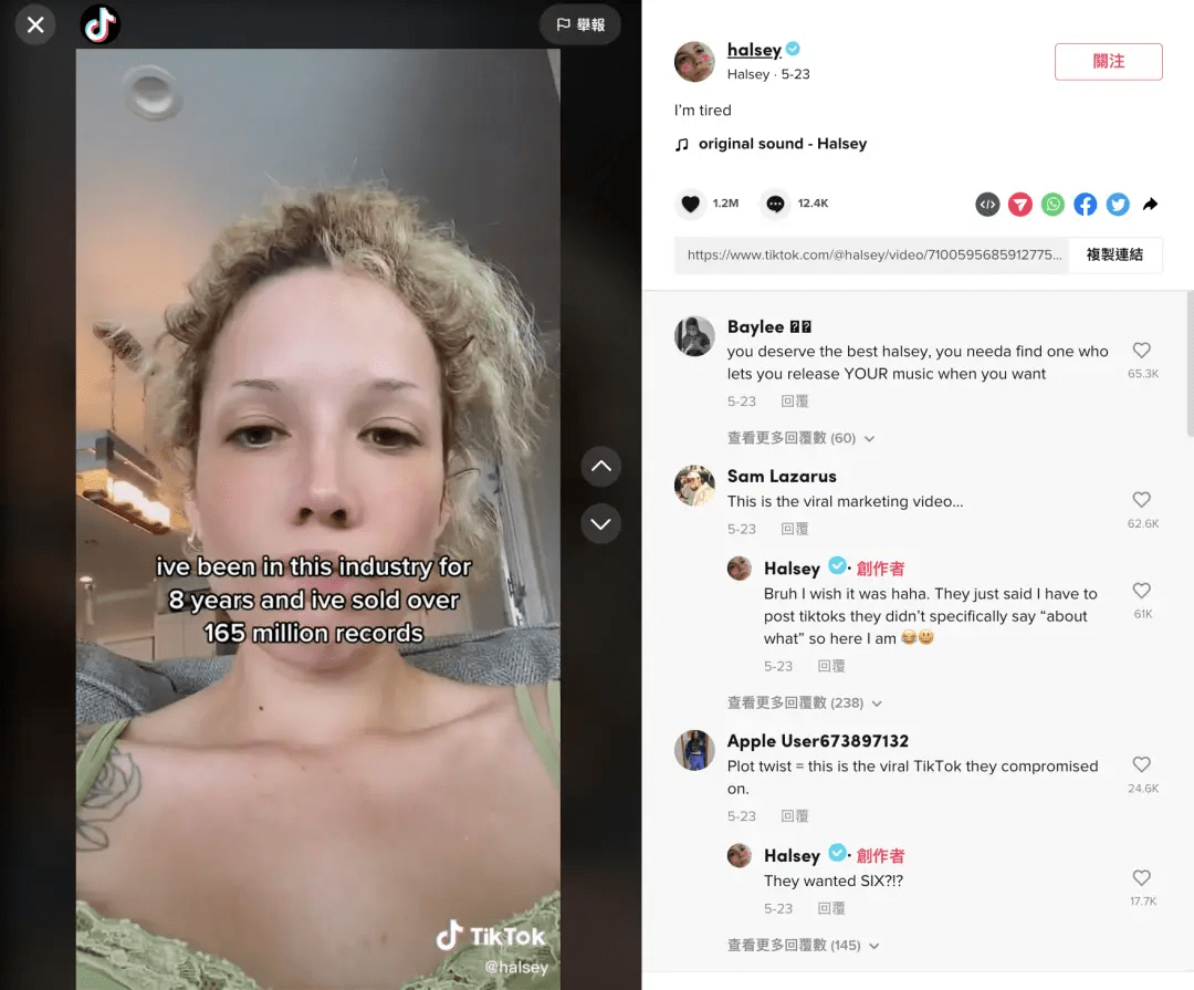美國當紅歌手 Halsey 吐槽經紀公司要求她必須在 TikTok 上面宣傳