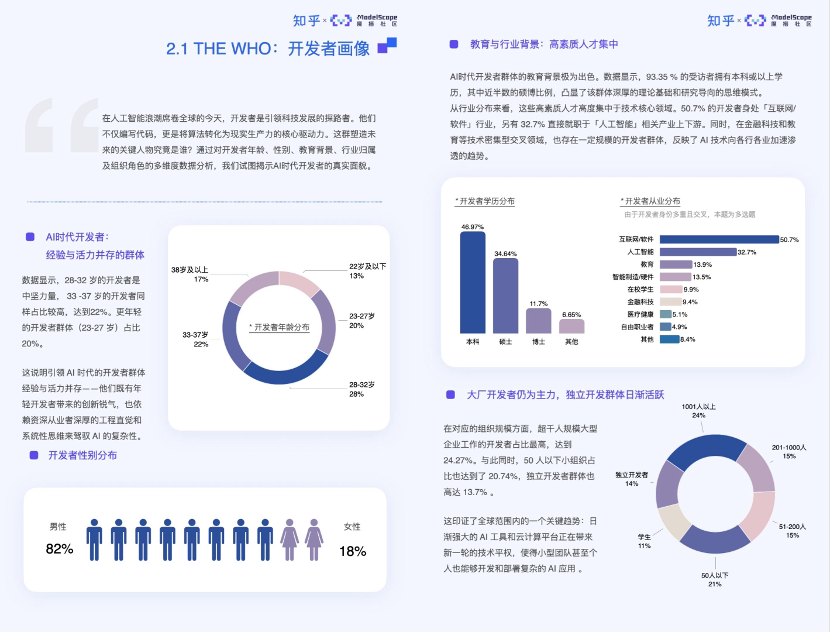 知乎聯合魔搭ModelScope發布行業首份《AI時代開發者生態白皮書》,AI不僅重塑了開發者的工作流程,累計在知乎發布122篇技術文章并編寫1400頁《AI全棧技術手冊》。
