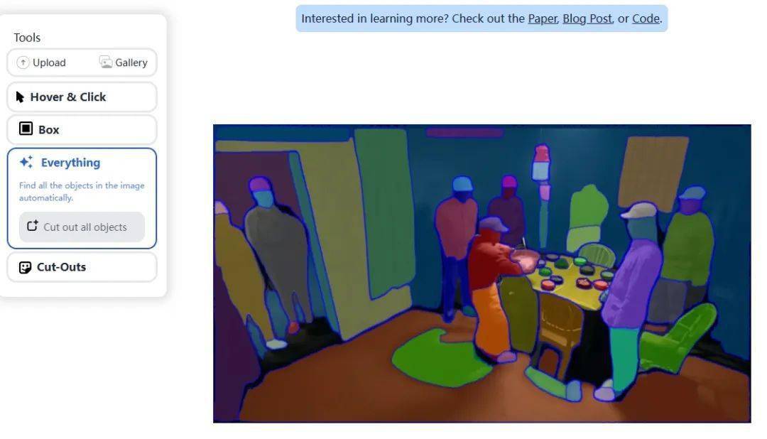 甚至,如果有一些圖片過于復雜,你自己都懶得去點標記的話,你還可以把分割的任務全權交給 SAM ,直接點擊 Everthing ,它就自動幫你把圖片中的可分割物體切割出來。