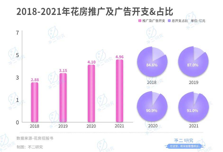 花房在招股書中解釋,推廣及廣告開支是線上用戶流量轉介、線下營銷活動產生的費用,及專門制作內容的相關成本。