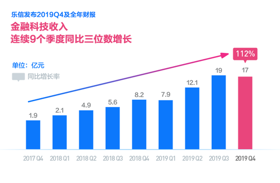 金融科技收入是本次財報的一大亮點。2019年全年金融科技收入達56億,同比增長171%;4季度,金融科技收入達17億,同比增長112%。