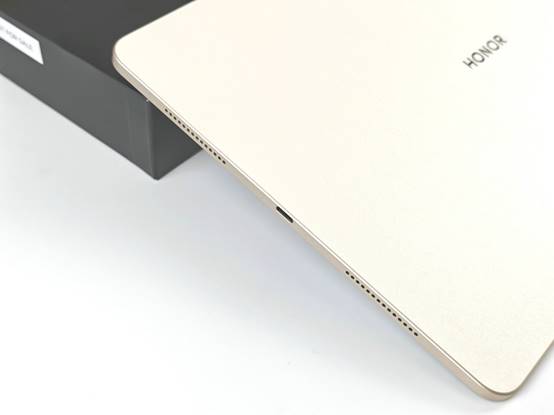 榮耀MagicPad3 Pro的背部設(shè)計(jì)同樣令人眼前一亮。該機(jī)此次共有浮光金、月影白和星空灰三色可供選擇,其中浮光金、月影白均為今年新款配色,而筆者拿到的正是主打的浮光金配色版本。該版本采用了業(yè)界領(lǐng)先的鎏光拓影工藝,給鋁合金材質(zhì)賦予流動(dòng)的生命,通過(guò)NIL紋理與珠光等多層材料工藝疊加,在不同光線下會(huì)呈現(xiàn)出獨(dú)特的光澤和紋理,仿佛每一面都擁有獨(dú)特的魅力,展現(xiàn)出一種高端、時(shí)尚的質(zhì)感,讓人愛(ài)不釋手。