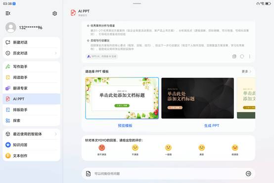 而在AI層面,榮耀MagicPad3 Pro支持AI文檔智能體、AI會(huì)議智能體、AI靈感隨寫(xiě)、一鍵生成PPT等功能,在各個(gè)方面助力生產(chǎn)力的提升。