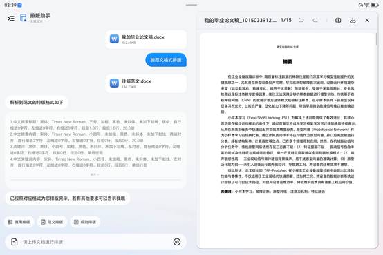首先以AI文檔智能體為例,這是榮耀MagicPad3 Pro在生產(chǎn)力方面的一大亮點(diǎn)。它不僅支持一鍵完成論文排版,還能根據(jù)用戶(hù)的輸入自動(dòng)生成思維導(dǎo)圖和摘要。這對(duì)于學(xué)生和研究人員來(lái)說(shuō),是一個(gè)非常實(shí)用的功能。