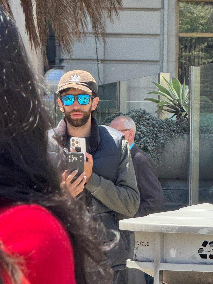 從照片中可以看到,一名戴著太陽鏡的人手里帶著黑色手機殼的iPhone原型機,這與此前曝光的iPhone 17 Pro的后置攝像頭布局基本一致,而另外一只手拿著iPhone 16 Pro。