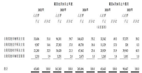 自動駕駛車輛解決方案的營收占比最高,2024年這一比例為55.2%,2025年上半年達58.2%。