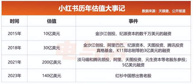 2021年底最后一輪融資后,小紅書估值達(dá)到投后200億美元。據(jù)業(yè)內(nèi)投資人士透露,去年小紅書的估值水平在100億至160億美元之間。