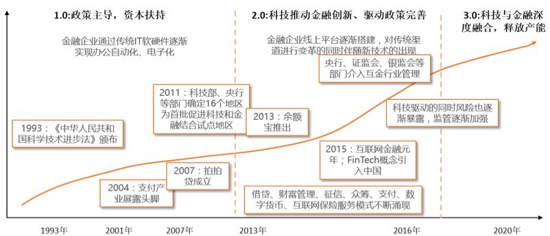 在2004年以前,我國實際上已經出現了金融科技的概念,并以金融機構IT系統的形式存在,處于金融科技1.0時代。2007年支付寶的出現,標志著我國進入金融科技2.0時代,2013年余額寶出現后,各金融機構加快云聯網布局,而后出現普惠金融、云聯網保險、云聯網銀行等公司。