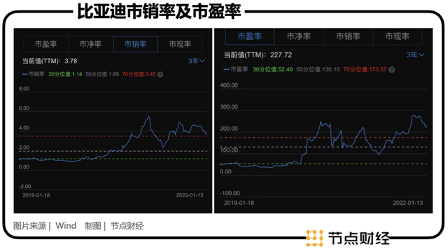 特斯拉一年前的估值還在1500倍左右,而今估值已消化了大半至300倍左右,以往特斯拉的估值似乎更需從“市夢(mèng)率”來(lái)看。那么同處于時(shí)代賽道的比亞迪究竟高估了嗎,除了市盈率、市銷(xiāo)率,我們還要結(jié)合“市夢(mèng)率”。