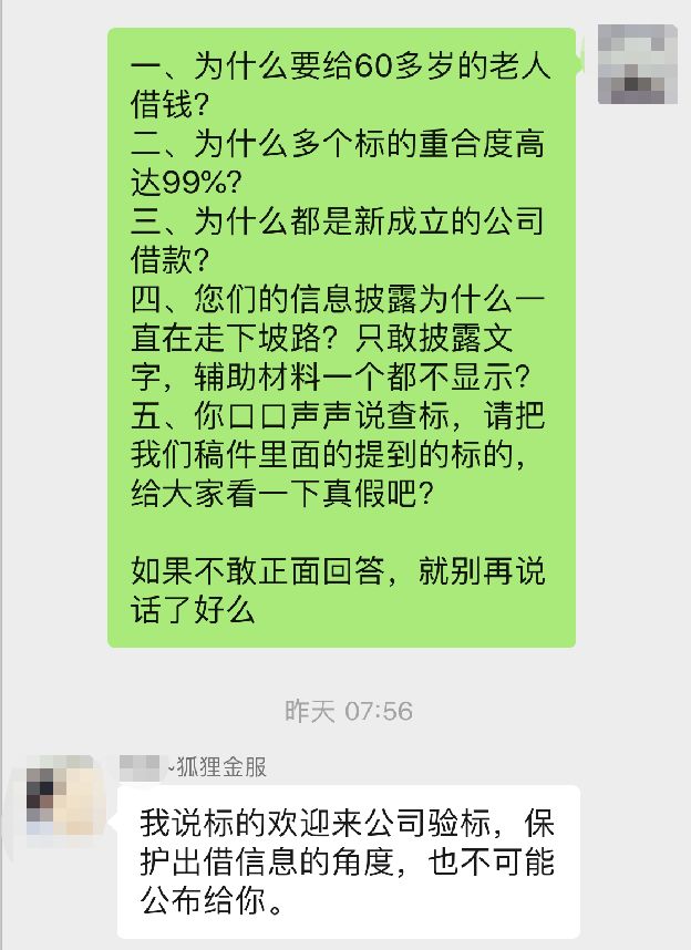 搜易貸方面并未正面回應,僅稱“歡迎來公司驗標,保護出借信息的角度,也不可能公布給你。”這也意味著,搜易貸平臺所宣稱的信息披露,僅止步于文字,而想要了解標的真假,必須要到搜易貸公司才能查驗。否則,一切免談。