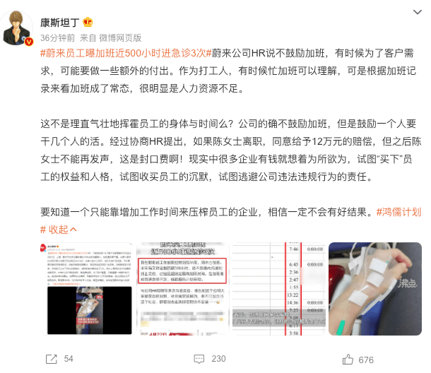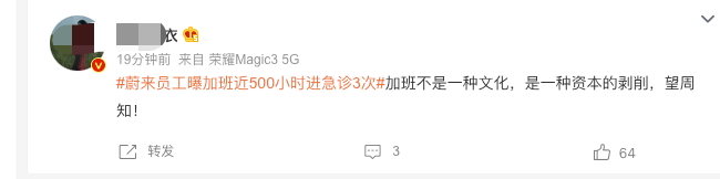 「我在蔚來半年加班500小時,進急診3次,體檢21處異常 ……」互聯網+