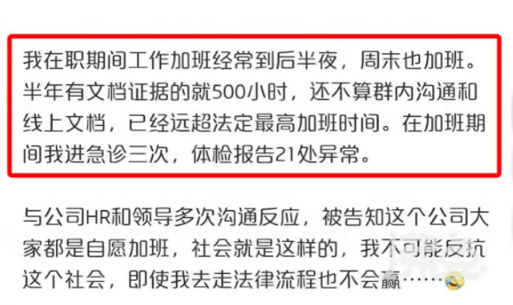也有網友表示:「HR稱公司不鼓勵加班,是自愿加班,為了用戶需要,可能需要一些額外的付出,這個額外的付出就是500小時的加班,這也太嚇人了吧」