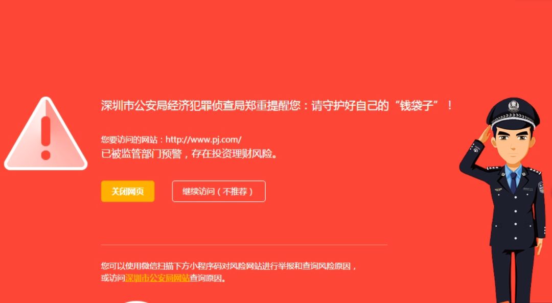 票據寶方面對獨角金融表示,“只有騰訊系的瀏覽器會有提示,但只是提示,可以繼續使用,深圳很多平臺都有這樣的提示。”