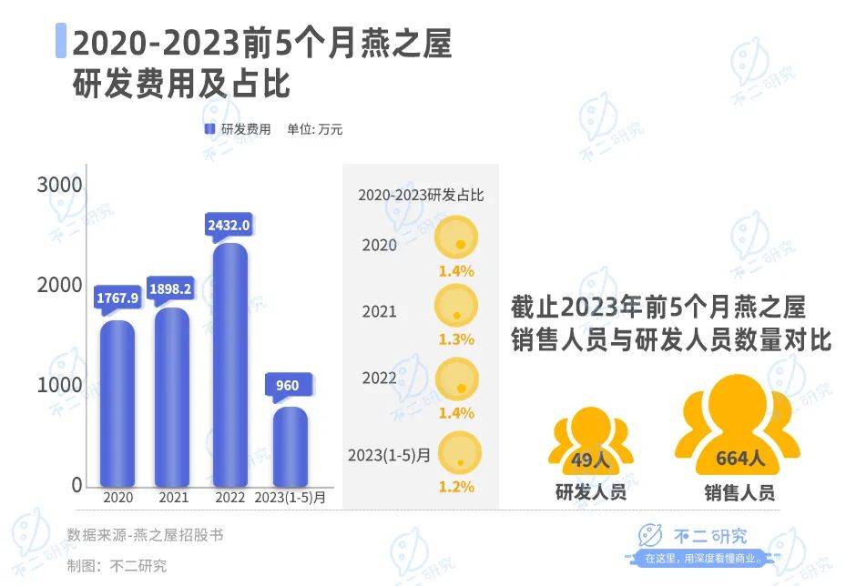 在「不二研究」看來(lái),作為燕窩行業(yè)的26年老兵,燕之屋營(yíng)收業(yè)績(jī)可觀,但高額的銷(xiāo)售開(kāi)支與低企的研發(fā)支出形成鮮明對(duì)比。